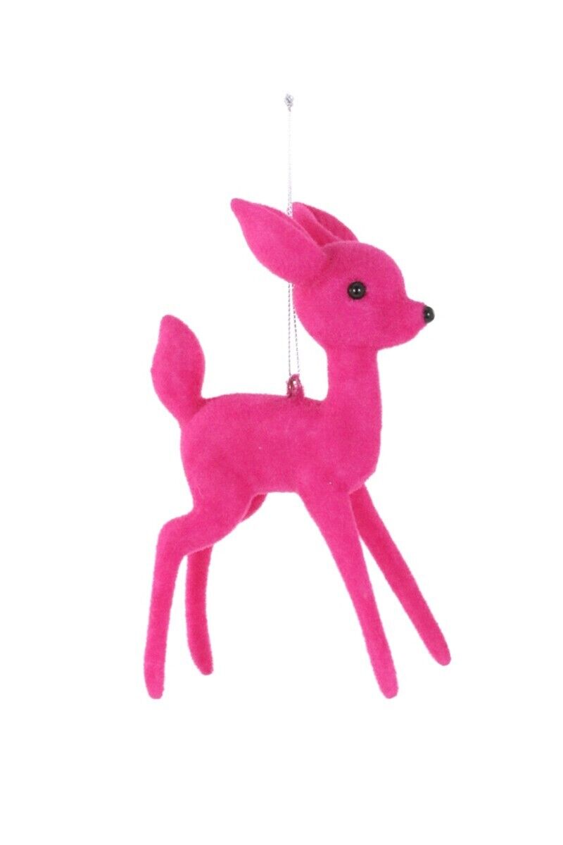 8" Cody Foster Hot Pink Flocked Retro Deer Ornament