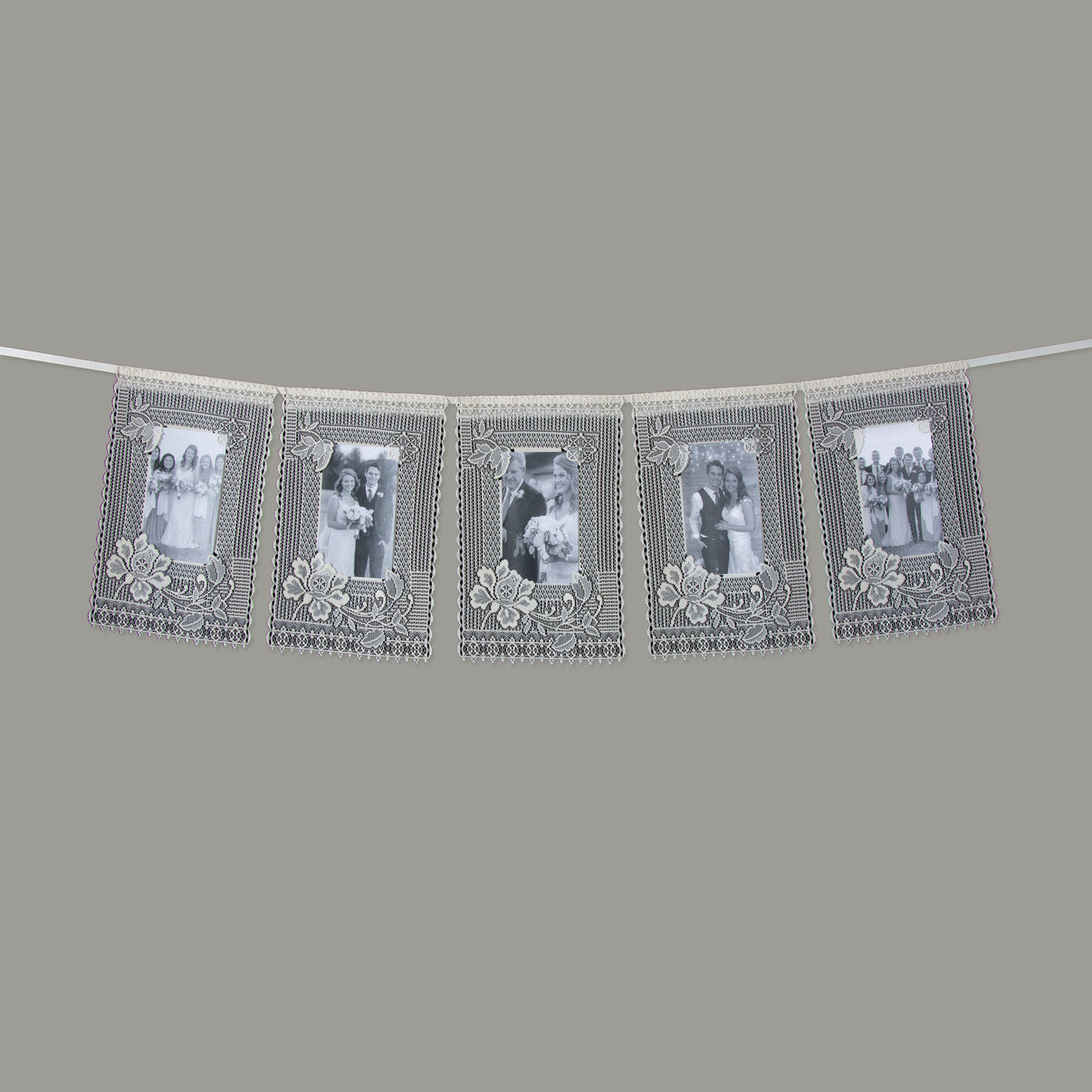 - Includes five lace hanging pieces that measure 8" x 12" each