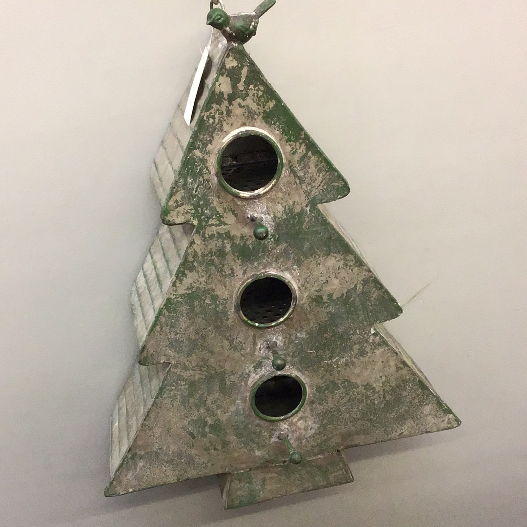 For real birds!! Metal hanging birdhouse. On the inside there are 3 separate levels and even includes a back door. Comes with metal hanger and hook