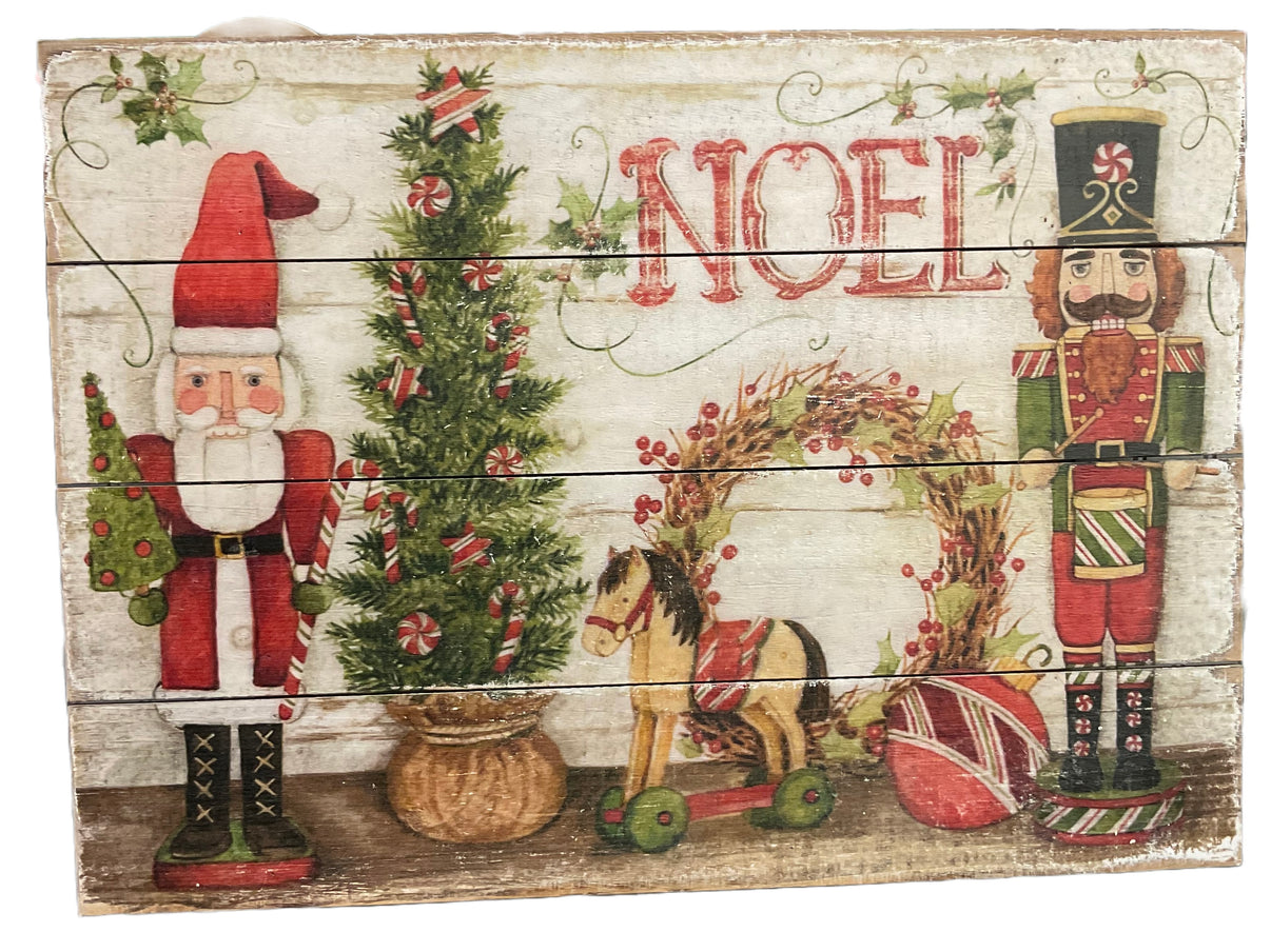 23 x 17” sign with nutcrackers, a holiday scene, and the word “Noel”