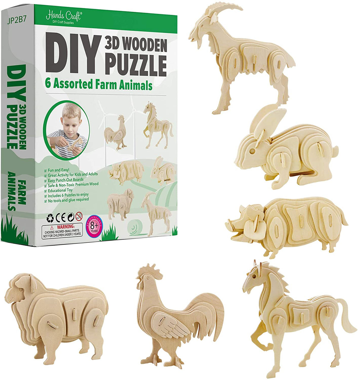 • 6 Puzzle Bundle Set: This bundle pack includes: Horse, Goat, Rabbit, Pig, Sheep, and Cock. No tools or glue is required to build your very own farm animal puzzles!