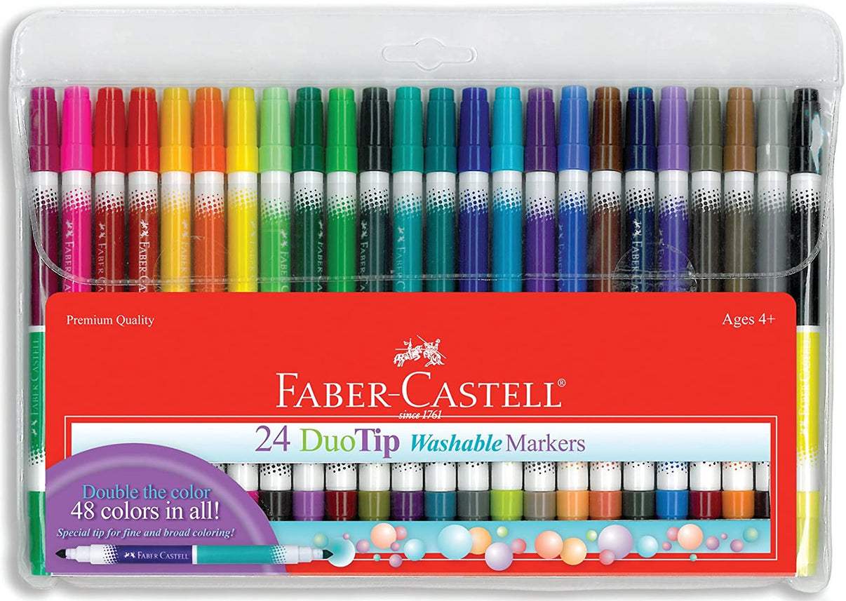 - 24 BRIGHT DUO TIP MARKERS - DuoTip Markers mean twice the colors for double the coloring fun! (24 markers, 48 colors) Washable ink is made from food-grade dyes