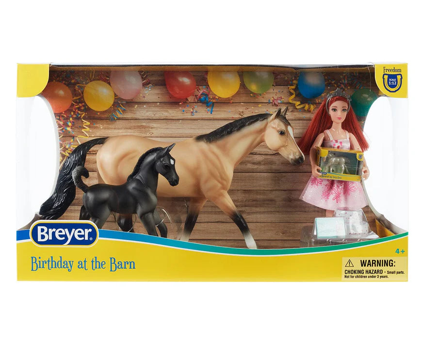 There is nothing more fun than a birthday at the barn, so giddy up and join in the fun! Come celebrate with Sarah and her favorite horse Betsy and Betsy's foal Boots. Sarah is ready to enjoy some cake and open her birthday present - her very own Breyer horse!