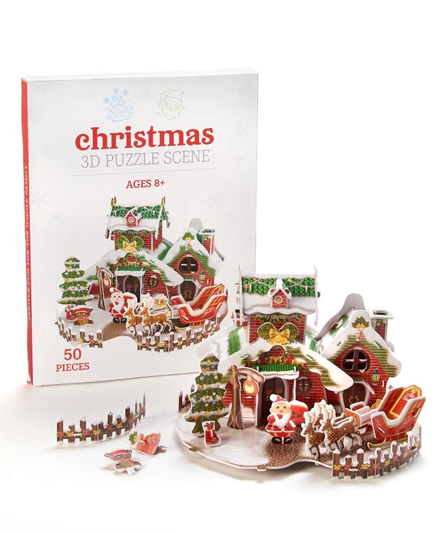 This foam 3D puzzle features a festive Santa's Workshop scene with Santa with his Sleigh and reindeer. 50 pieces.