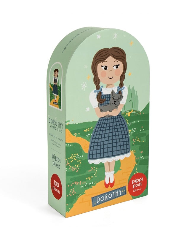 Follow the yellow brick road with Dorothy in our 100 Piece Jigsaw Puzzle. This puzzle captures the magic of The Wizard of Oz, making it a delightful activity for fans of the classic tale. With 100 pieces, it's a family fun activity for adults and children alike. The unique dome shape of the box also serves as an excellent display on any bookshelf. Ideal for those who appreciate the magic of Dorothy's journey to the Emerald City.