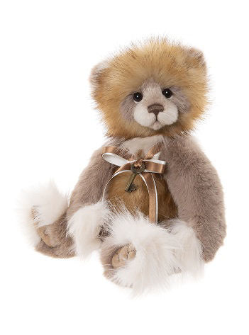 Rebecca is a 14.5" panda and made from long, soft plush material with alpaca detailing on her muzzle.She has two black glass eyes and a coloured, hand stitched nose. She has sculpted, padded detailing on her bear paws. Rebecca is finished off wearing a luxurious bow ribbon around her neck.