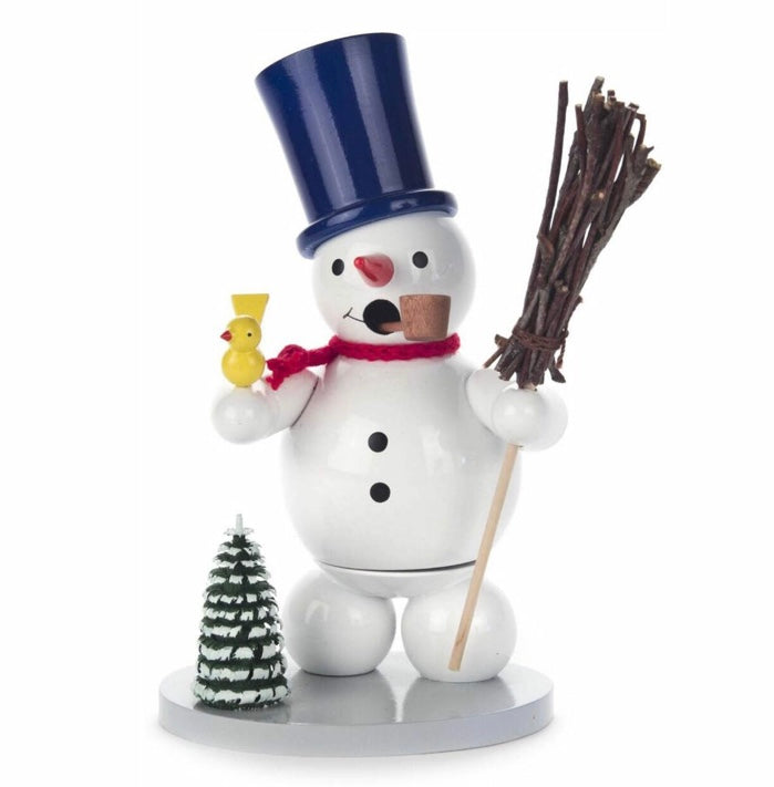 6" Smoker Snowman with Top Hat, Tree and Bird Decoration