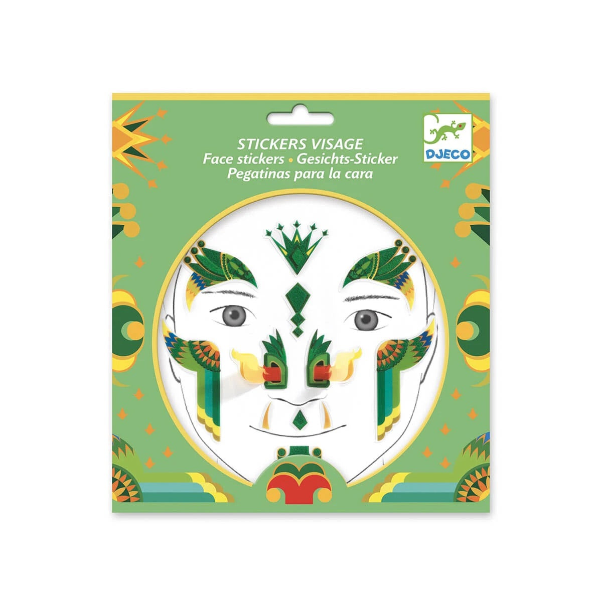 Dragon face stickers by Djeco. Easy to use stickers to transform yourself in the blink of an eye. Features velvet effects.