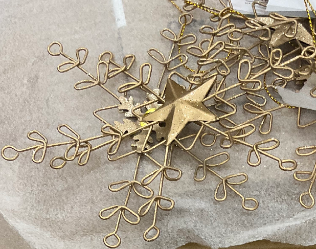 Beautiful copper wire inspired snowflakes. Great for decor. They have assorted designs. Some snowflakes have a star in the center and others have a different styled snowflake in the center....