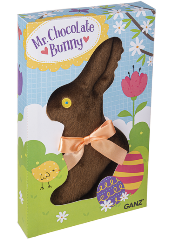 11.25 " H. You have to look twice at this--it looks just like the Chocolate Easter bunnies you used to get in your Easter basket, but IT IS PLUSH!! Surface Washable! Recommended for Children 3 Years and up.