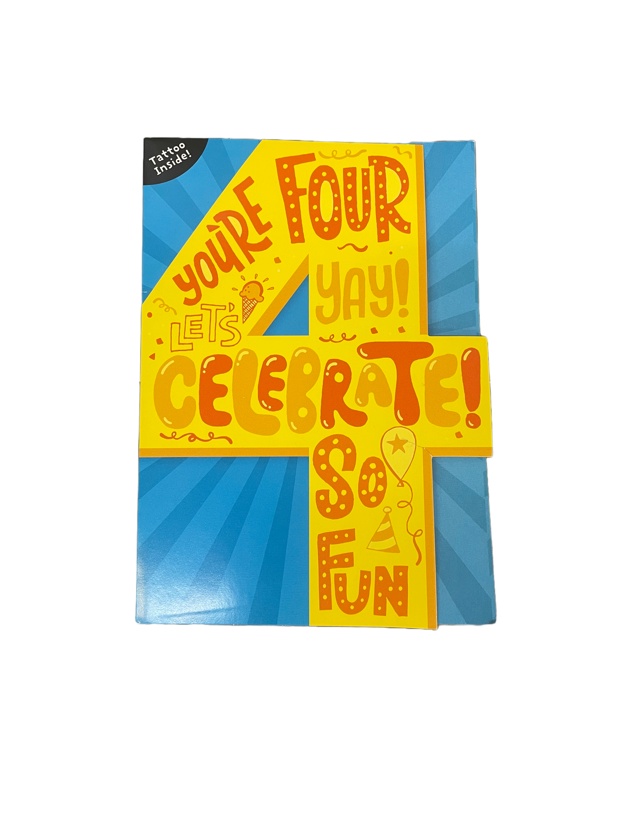 This 5 x 7 inch card will be perfect to wish any little one a happy birthday on their 4th! Comes with a temporary tattoo inside!!