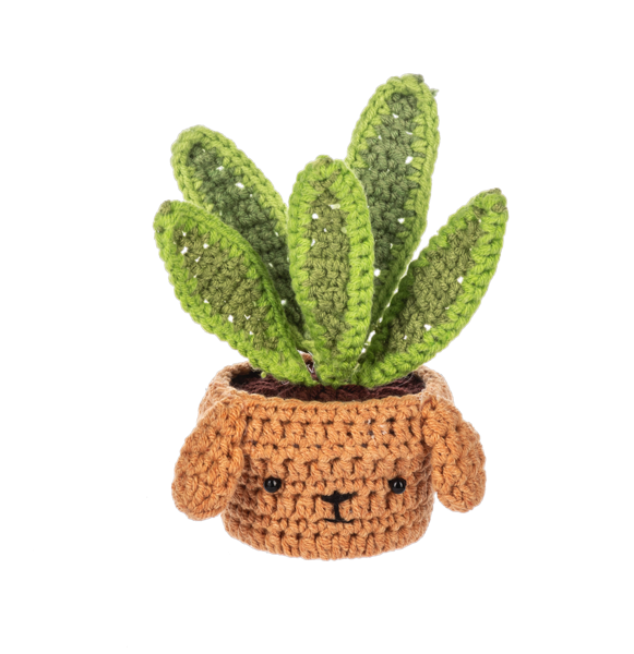 Crochet Dog House Plant Figurine | Brown