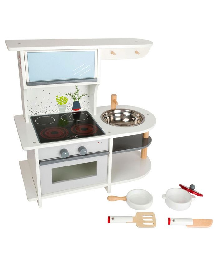 All young chefs to the stove! Hungry mouths are coming for their share! This wooden kitchen set from Legler comes with 7 pieces