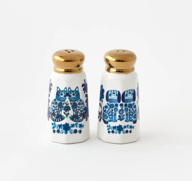 Blue & White Salt and Pepper Shakers | Dog Cat