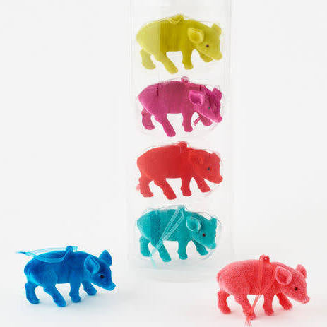 180° brings you set of six blocked pig ornaments in the collection of Tinseltown. Amazing colors can be used as Christmas ornaments or table top decor