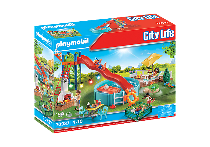 With fillable pool and light effects on barbecue and lanterns. 3x 1.5 V micro batteries required.