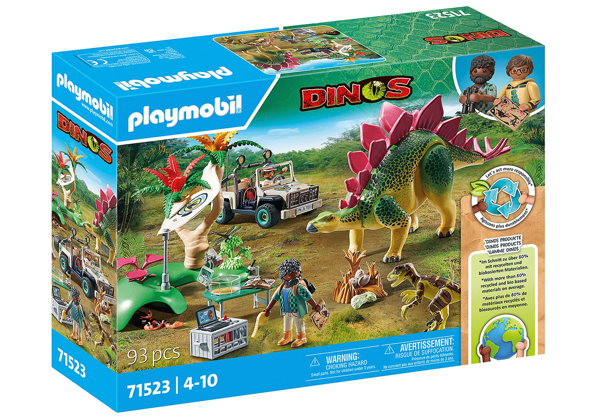 At the camp, the two explorers prepare for their next discovery tour by off-road car through the exciting world of dinosaurs. After the instructive spin, back at camp they come across a Stegosaurus and a cheeky Deinonychus, who tries to reach the dinosaur eggs with thieving intentions. Includes two dinosaur knowledge cards.
