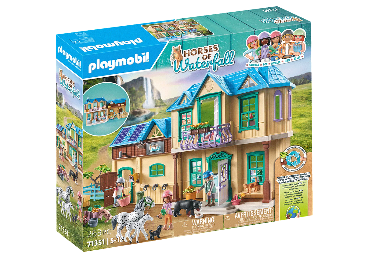 At the foot of California's White Mountains in front of impressively roaring waterfalls lies the picturesque Waterfall Ranch - a horse farm that for generations has been popular with parents and children alike and with which many people from the idyllic Waterfall region associate precious memories. Respected riding instructor Muriel Thompson lives in the comfortably furnished residence, which is adjacent to a horse barn and paddock. Sharing the stable are Muriel's mare, Sparkles, and her sweet foal, Domino. The Waterfall Ranch is also home to many other pets and farm animals, such as Teddy the curious piglet, who often causes chaos during riding lessons! Also visiting today are student rider Amelia and equine therapist Phil, who actively help Muriel care for and train the Waterfall horses. Fun Fact: Muriel video chats at least once a week with her daughter, who lives with her two children in faraway Australia.