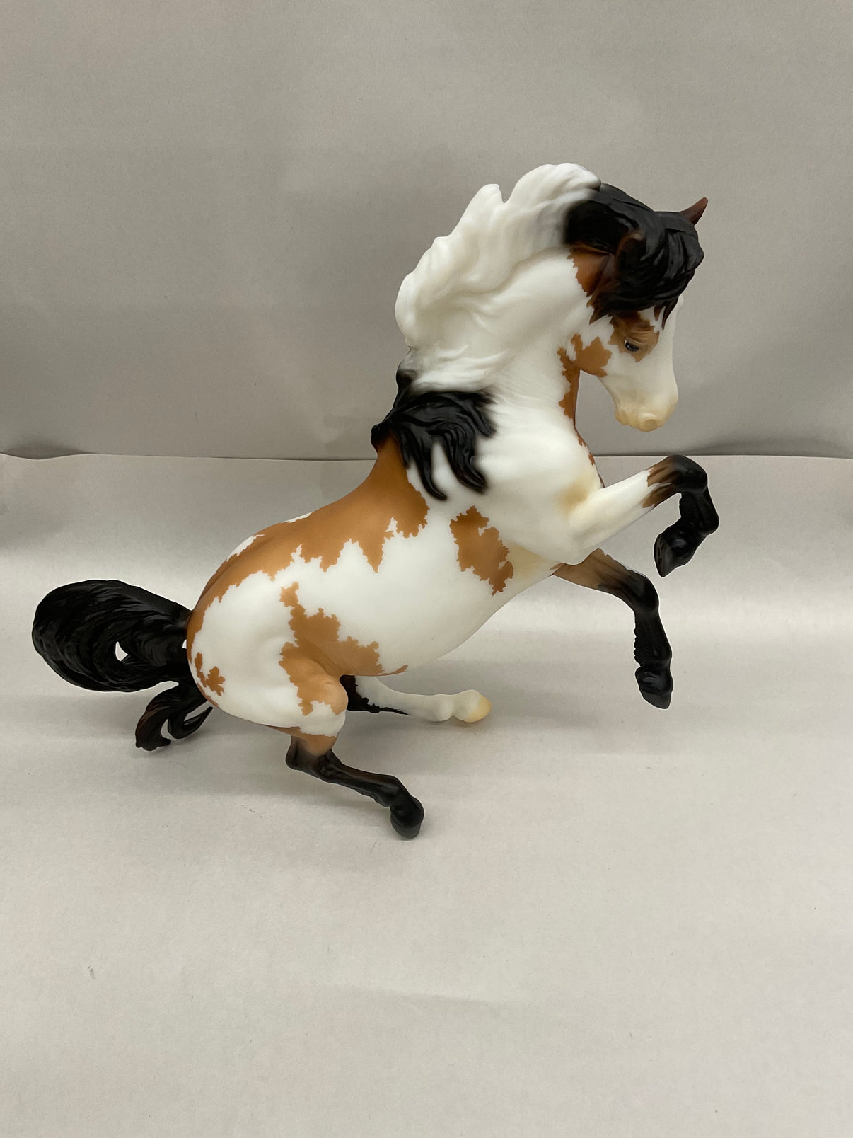 Run Type: Special Run - 10 years since the last time she was a BreyerFest Special Run, our lovely Connemara Mare made an appearance again in 3 different coat colors. The run was a 50/50 split between a frame overo piebald (1,113 pieces) and frame overo buckskin (1,112 pieces). Plus, a secret micro run of 75 pieces done in a glossy metallic blue frame overo!