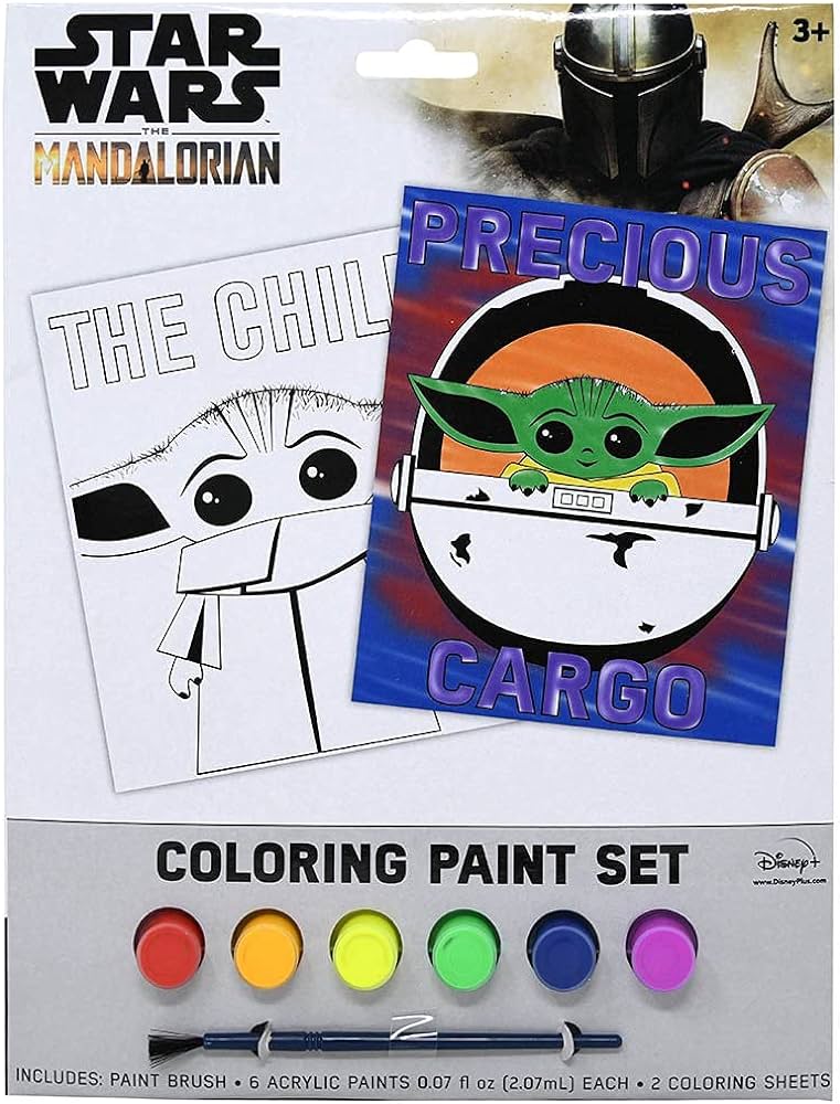 Star Wars The Child Coloring Paint Set - The Mandalorian Star Wars Kids Art Set, Included 6 Acrylic Paint Set, Brush, and 2 Coloring Sheets, Fun Children Painting Set Activity for Boys and Girls