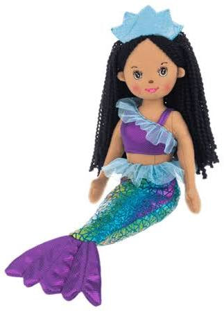 Bring a splash of magic into your world with Ganz Shimmer Cove Mermaid Nevis! This playful plush toy features a colorful tail, a blue crown, and rosy cheeks. Complete with a stylish top and flowing black hair, this mermaid doll is sure to make a splash in your collection!