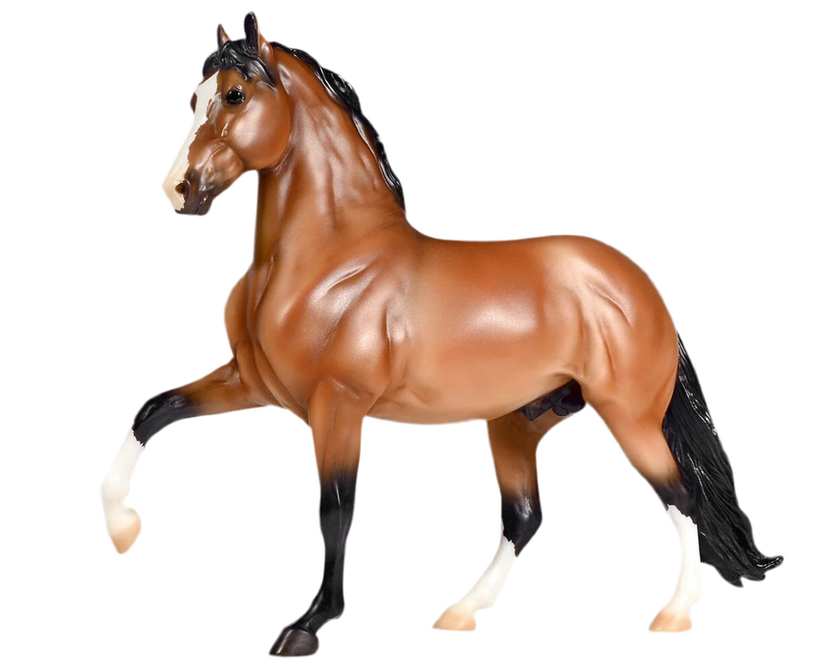 Today, Peruvian Pasos are still cherished for their brio, beauty, and smooth gaits. They are popular trail riding, show, and pleasure horses. Named after a district in Peru’s capital city of Lima, Barranco is a richly-shaded bay stallion with lots of chrome! He’s sporting the elegant neck and smooth movement that his breed is known for.