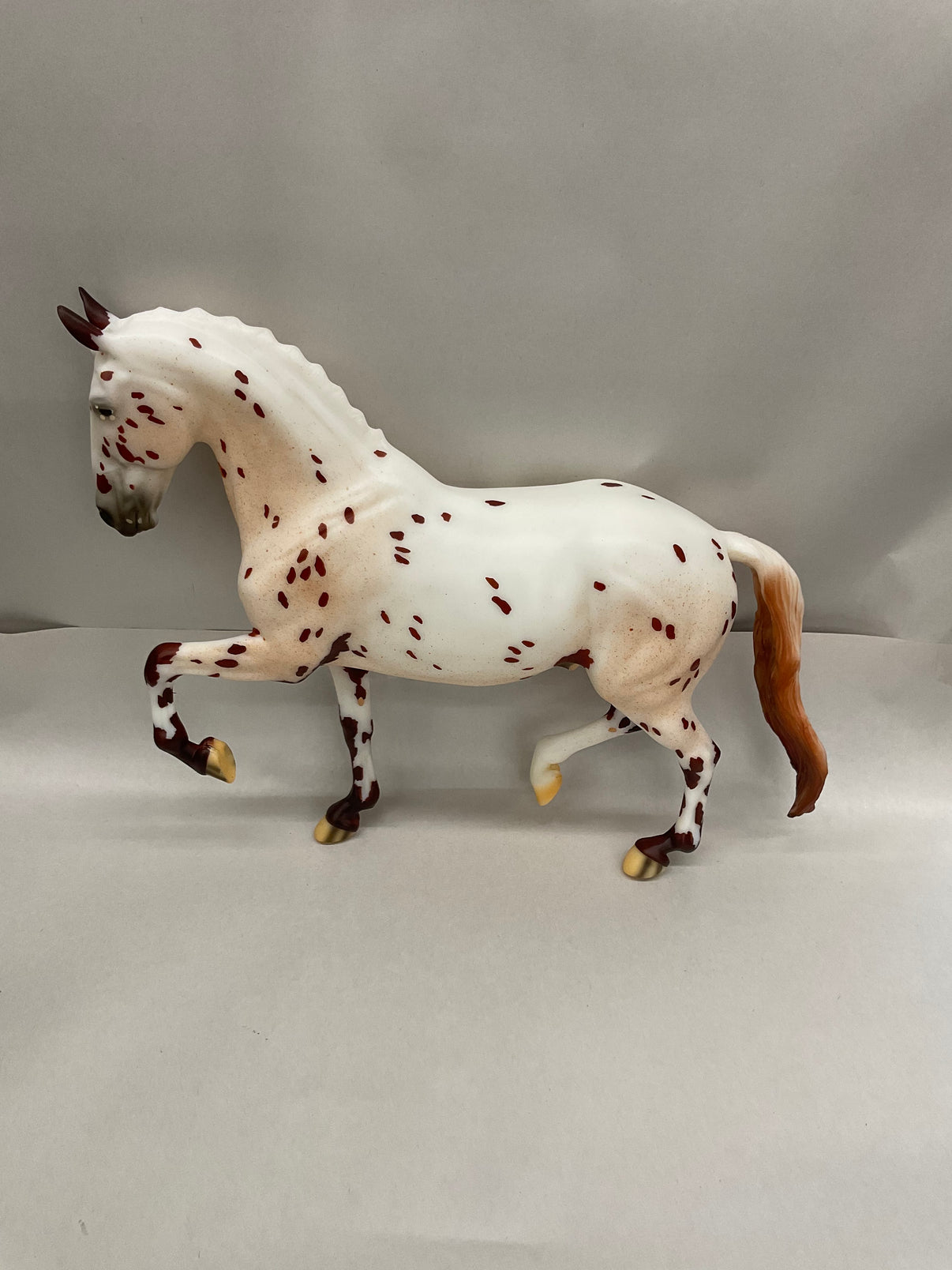 For our Team Matte/Team Glossy fans, this guy was our matte/glossy split. 805 pieces were done with a matte finish and 1,495 pieces were done in a stunning glossy finish. This horse is the matte edition. Comes with the stand. No Box. Purchased from Breyer at Breyerfest in 2024. Looks to be in mint condition. Has been on display. For more information please email mcwhiggins@gmail.com