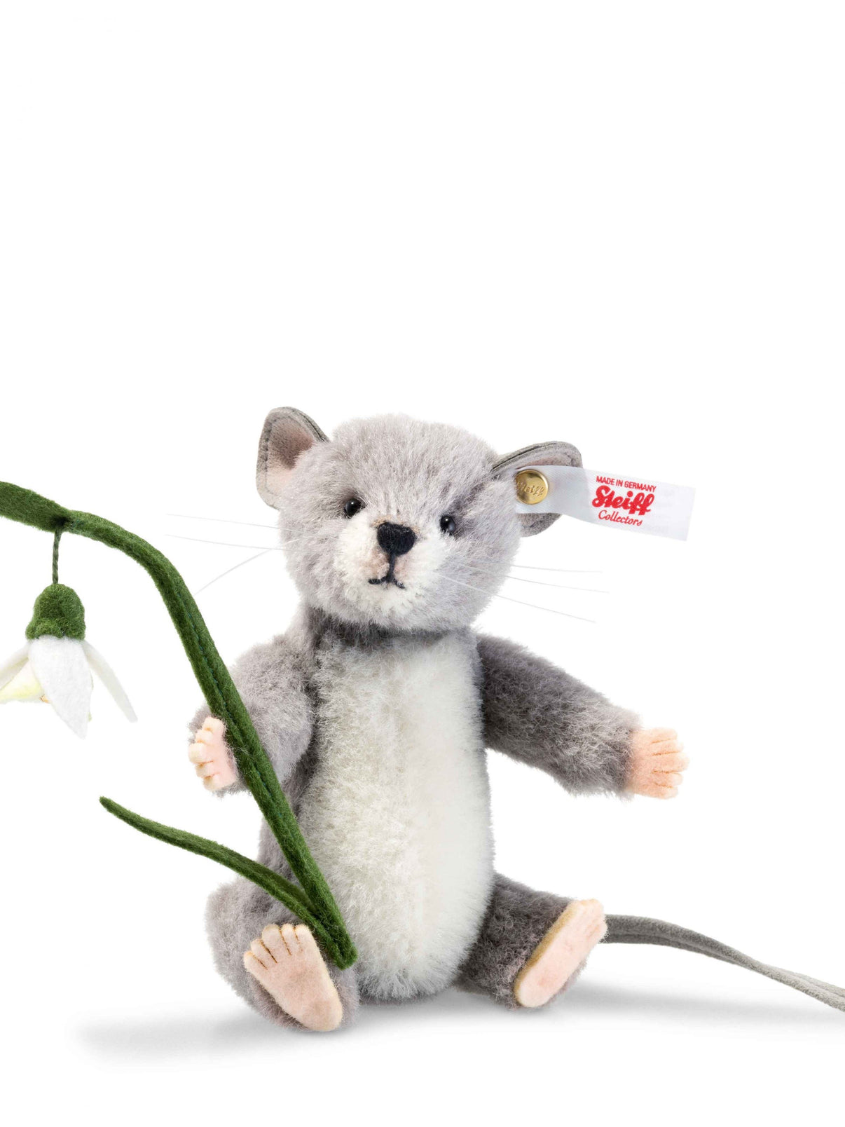 Made of finest alpaca with wool felt paws, tail and inner ears, Lena mouse is fully jointed and holds a felt snowdrop in her paw.
