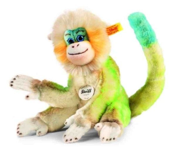 This fantastic and unusual monkey is called Mungo, he is a 24cm soft toy made by the German Teddy Bear maker - Steiff. He is made of multi-coloured cuddly soft plush and is filled with all new materials. Mungo has the famous Steiff button-in-ear with a yellow label. Machine washable at 30C.