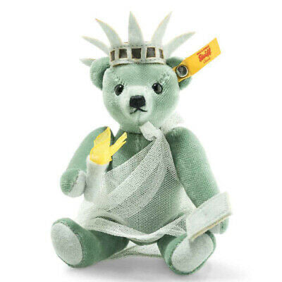 The real Statue of Liberty on Staten Island stands a magnificent 305 feet (93 meters) tall. While our Teddy version is considerably smaller, she’s no less impressive. Her mohair has been dyed green to match the tarnished copper patina of Lady Liberty herself. Her outfit is completed by a sash made of netting, a die-cut felt torch, and a handcrafted felt crown. From the “Vintage Memories” series of collectibles that that will add charm and warmth to any collection.