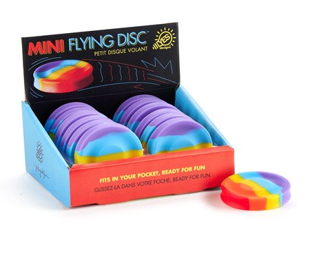 Take the fun with you wherever you go with this mini rainbow flying disc. Fits in your pocket! Silicone.