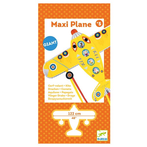 Maxi Plane is a giant kite in the shape of a yellow plane from the DJECO collection. It looks great in the sky! Contents: 1 monofilament kite (polyester and fiberglass...