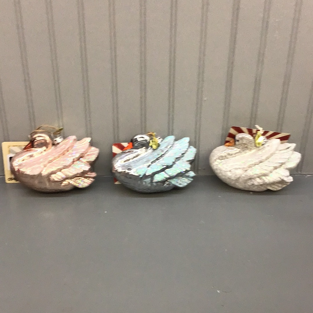 Super cool frosted glass swan ornaments . Comes in assorted colors . Call or text to chose color 502-693-4203