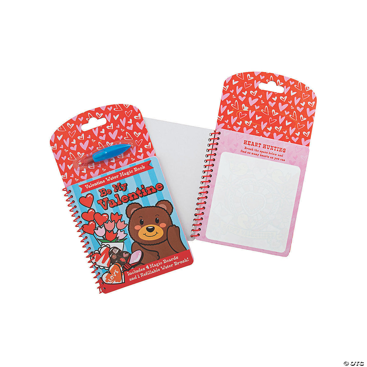 Bring cute Valentine's Day scenes to life with these "magic" brush pens on these adorable spiral notebooks. Each Valentine activity book features four pages of scenes that will only show up when the refillable water pen is brushed over the surface. Add these activity sets to your Valentine's Day giveaways and supplies. Paper. (6 sets per unit) 6" x 11"