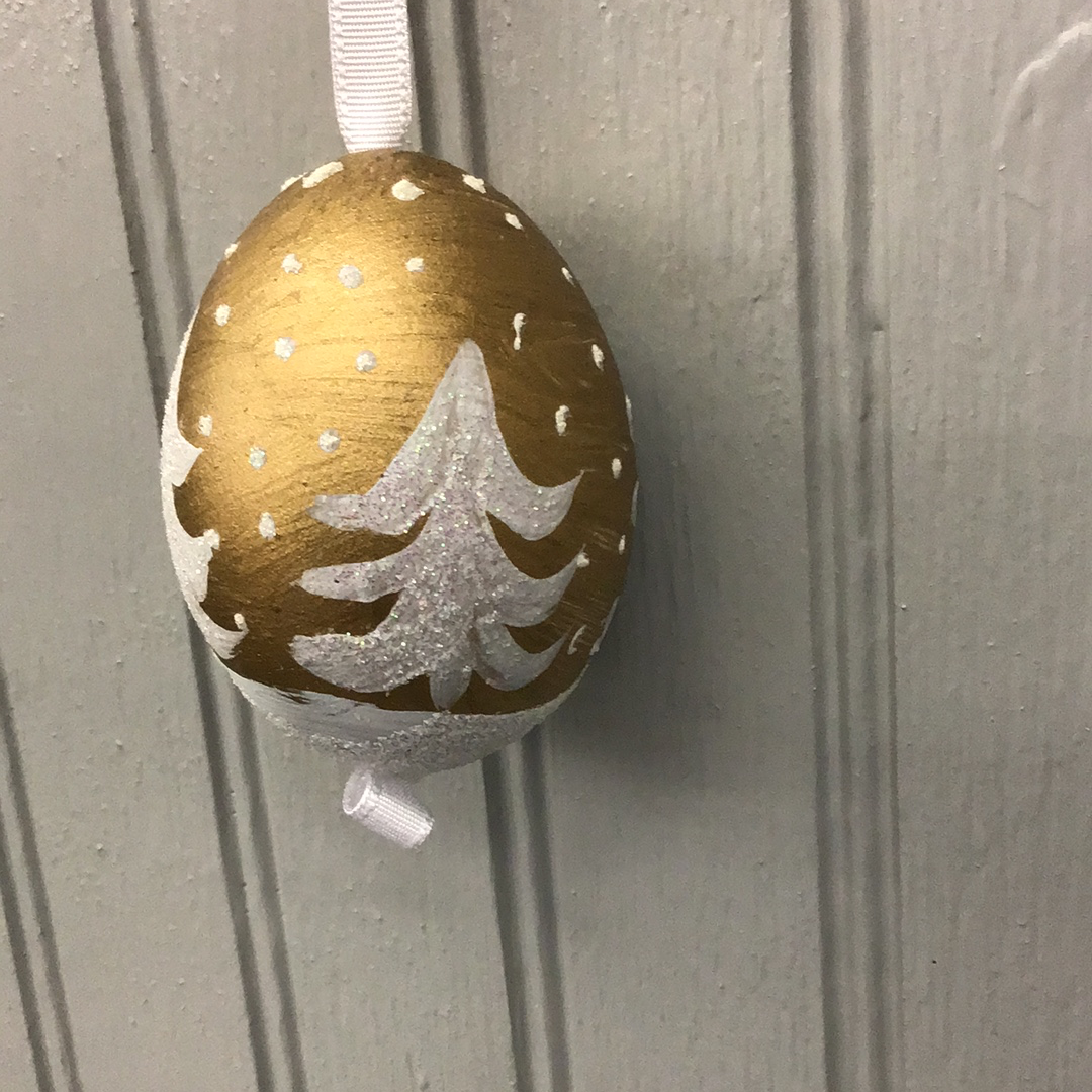 Austrian Hand Painted Gold Egg with White Trees- 47601