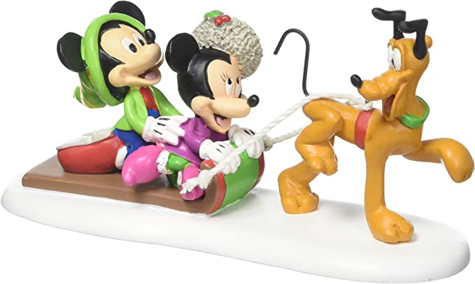 Time for a break to play in the snow! Mickey and Minnie are wearing bright colored snow outfits and kneel on a sled while their beloved Pluto pulls them through the snow! Introduced January 2017.
