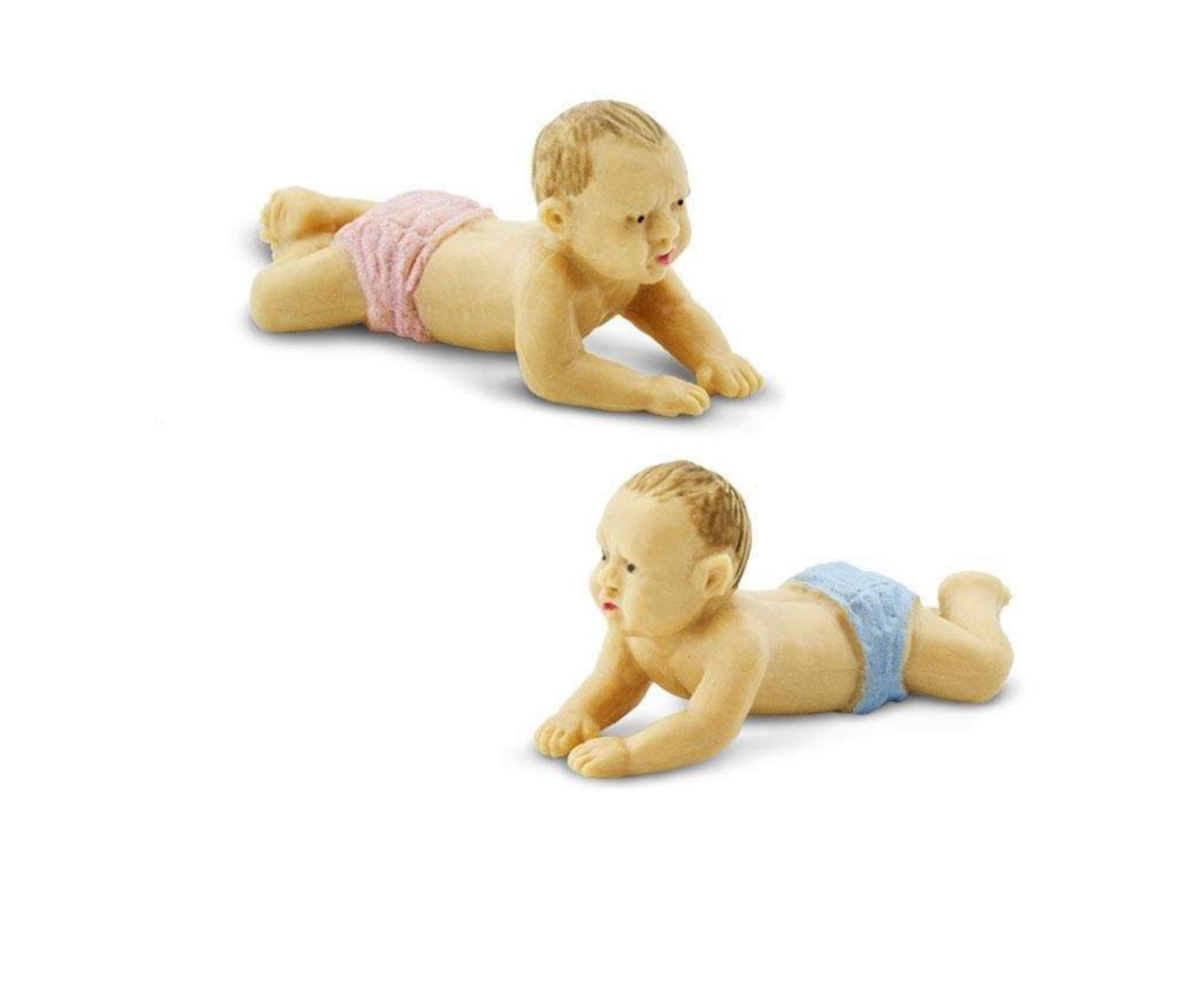 These adorable babies represent children at about six months old, just getting strong enough to begin crawling. They wear cute, colored diapers and have curious facial expressions fitting for infants. ...