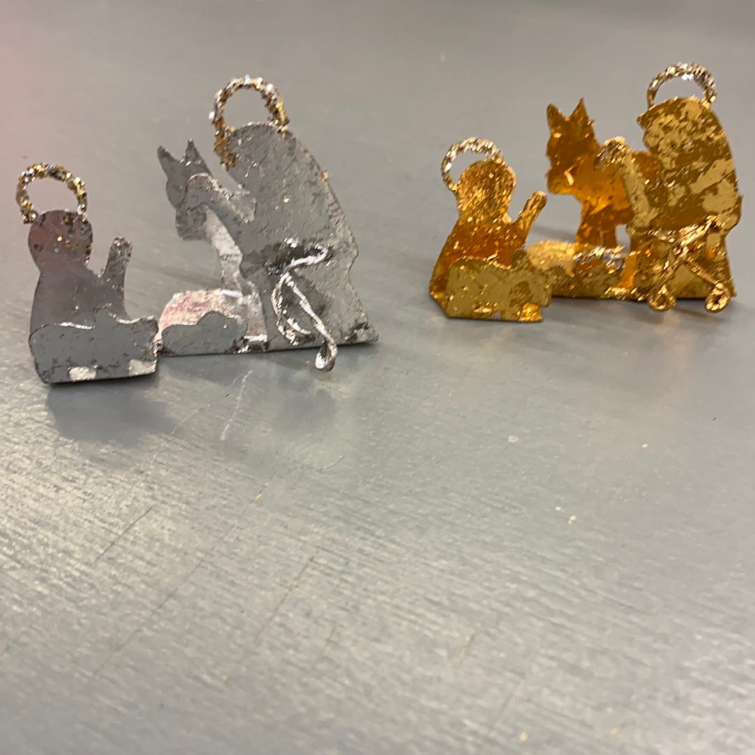 Super Tiny Nativity made of tin. Halos are glittered. Each sold separately. Call or text 502-693-4203 to select a color